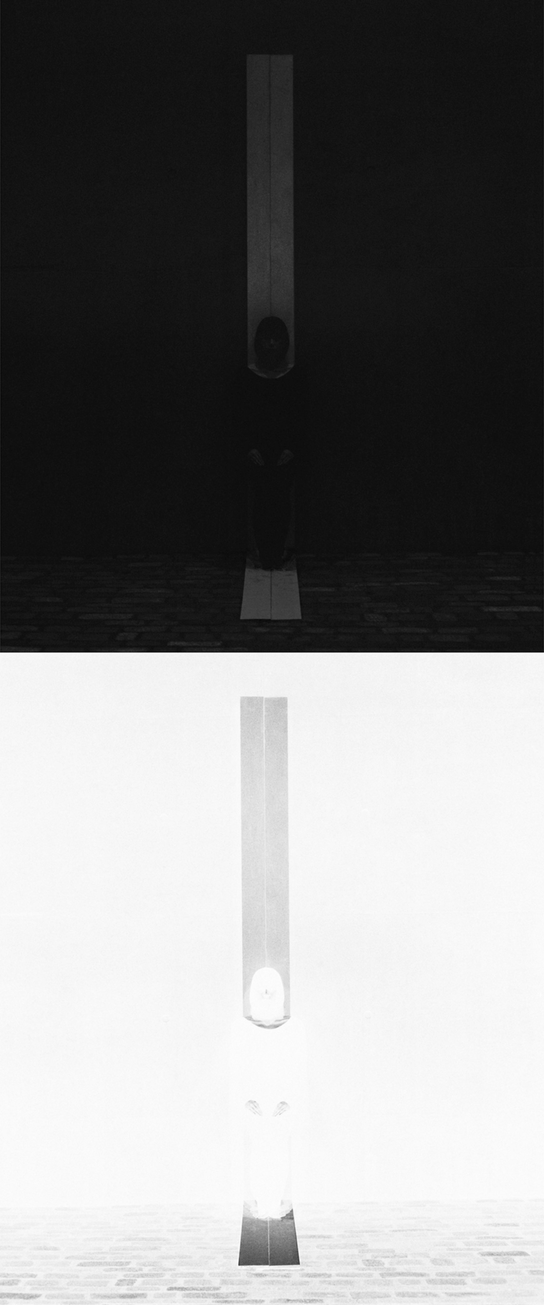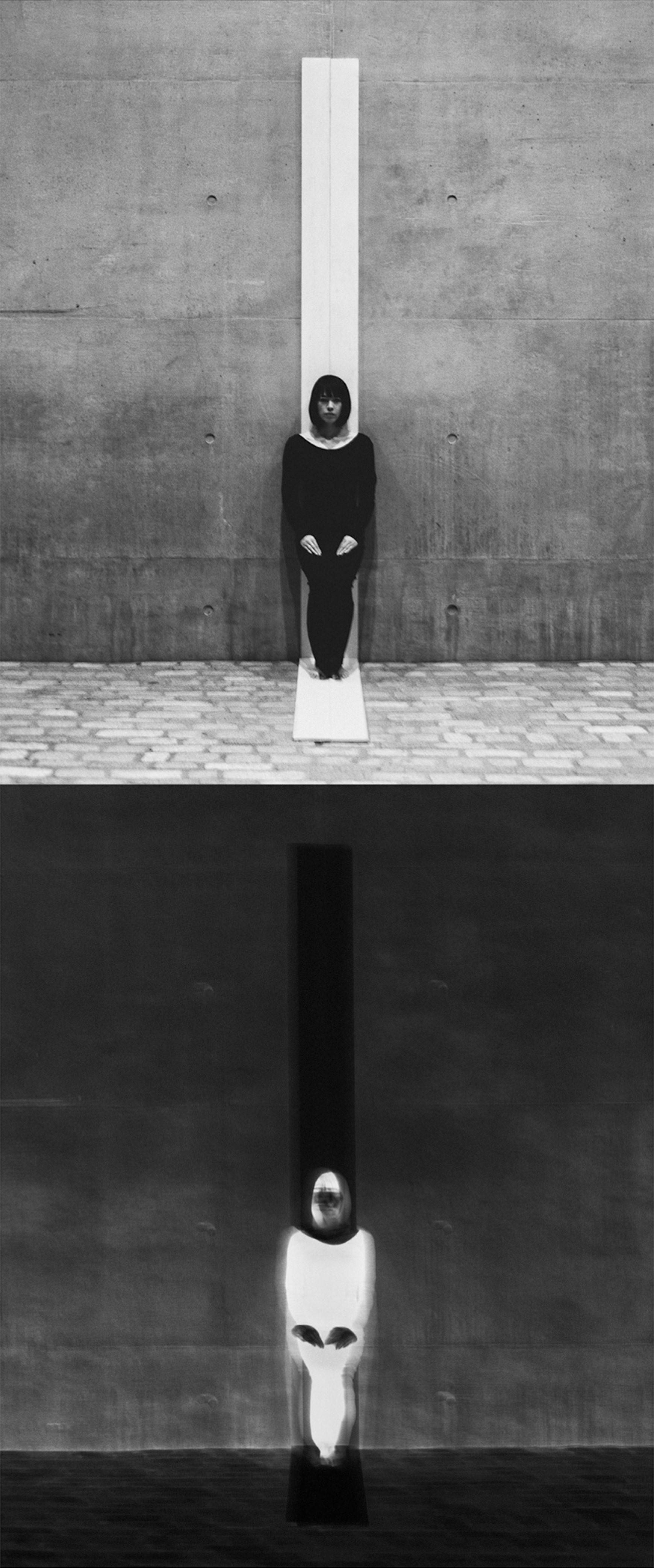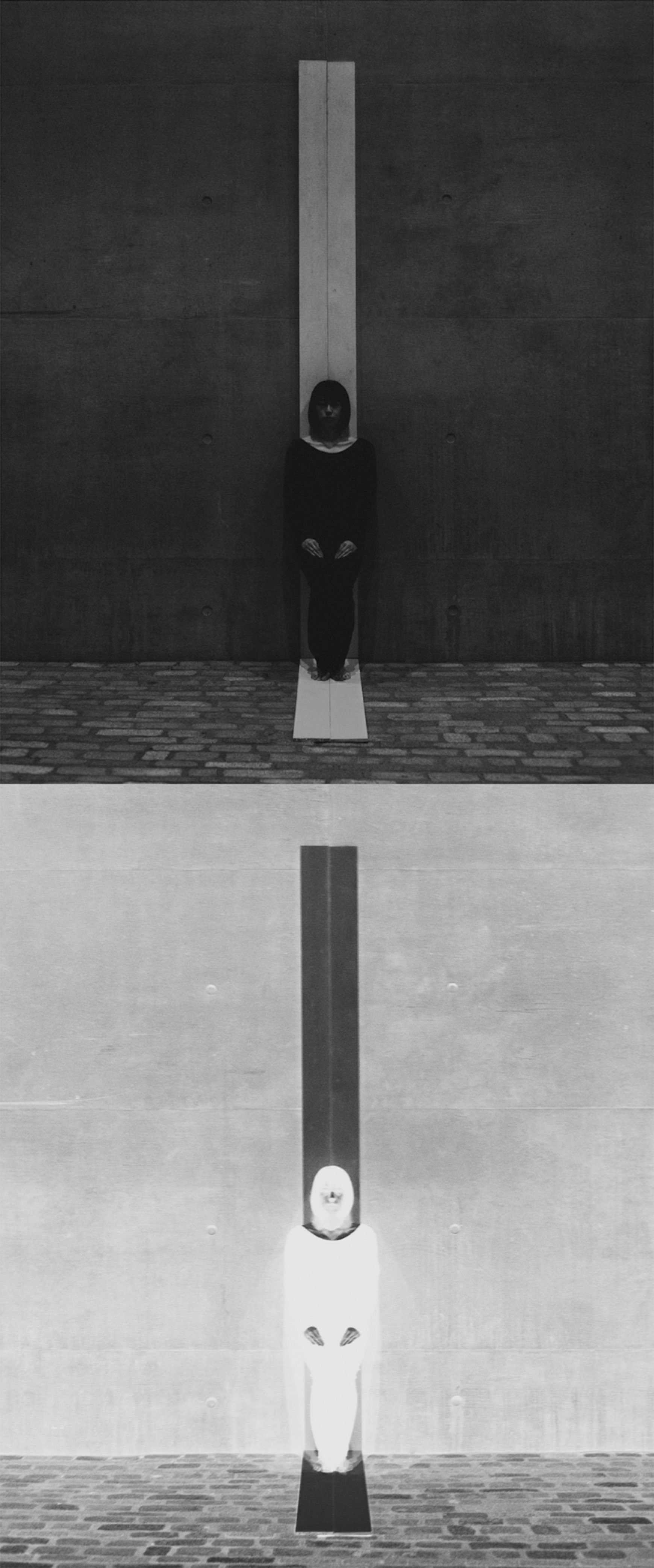 A position from the choreographic piece Bretter (Reinhild Hoffmann, 1980) that explores movement tensions in the still body is re-staged as an endurance performance whose length is "measured" by the photographic camera. The performer seems still but internal movement, the tension graduating in her body, is slowly bringing an end to the stillness.